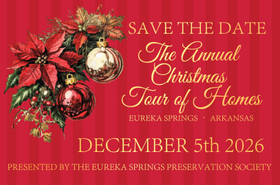 For four decades homeowners in this Victorian village have invited visitors inside their historic residences to share the joys of the holiday season. The tradition continues December 5, 2026. Come stroll through one of the largest historical districts in the country, when the Eureka Springs Preservation Society hosts The 45th Annual Eureka Springs Preservation Society Christmas Tour of Homes.